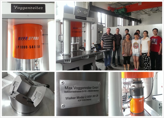 2014年6月,德國Max Voggenreiter(沃根瑞特)的專家Michael Petri和Frank Sunkel到中科院物理所(北京)進行了國內首臺Mavo LP1000 高溫高壓爐(Multi-Anvil大腔體壓機)的安裝培訓。設備穩定的加壓加溫性能、卓越的控制精度、易用的自動控制以及完善的安全保護,贏得了中科院物理所用戶的肯定。